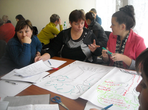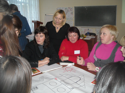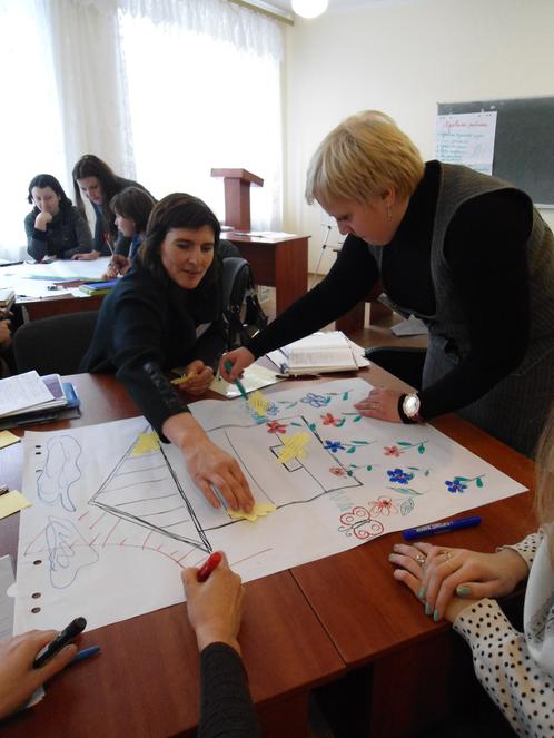 Роботу тренінгу забезпечили тренери ВФ «Крок за кроком»: Людмила Некраш – тренер ВФ «Крок за кроком», завідувач центром соціально-педагогічної та психологічної діагностики і моніторингу районного методичного кабінету відділу освіти Ставищенської райдержадміністрації, завідуюча науковою лабораторією сільської школи Київського обласного інституту післядипломної освіти педагогічних кадрів; Наталія Грама – вчитель початкових класів Борівського навчально-виховного об’єднання «загальноосвітня школа І-ІІ ступенів – дитячий садок», координатор громадсько-активної школи (Макарівський район, Київська область);