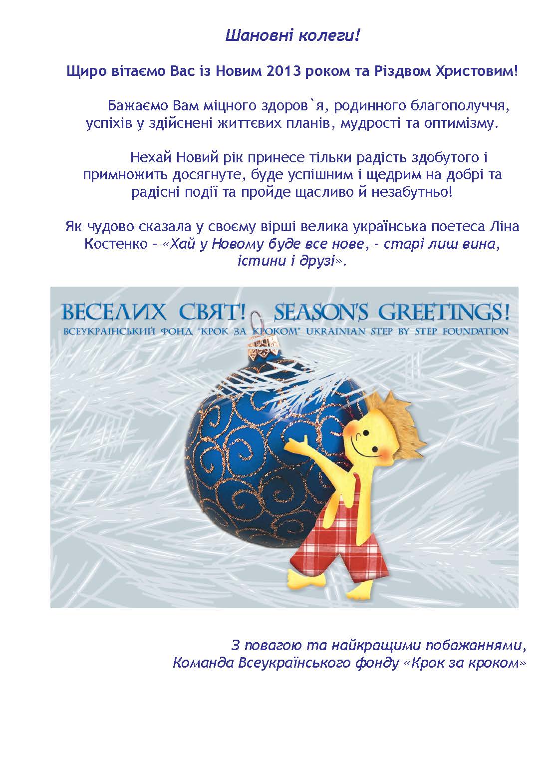 Шановні колеги! Щиро вітаємо Вас із Новим 2013 роком та Різдвом Христовим!